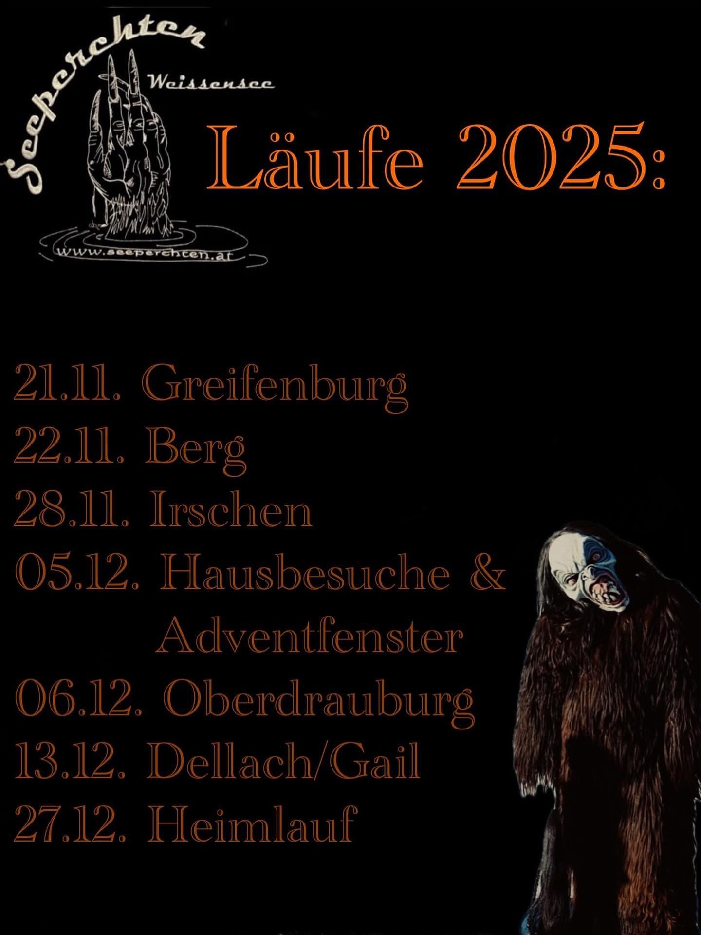 Hier findet ihr eine Übersicht über die Läufe, an denen unser Perchtenverein teilnehmen wird.
